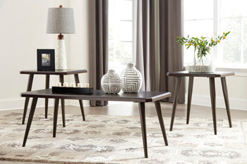 Master the art of minimalism with this coffee table set Crafted of tubular metal that includes a touch of texture on the tabletops this stylish trio strikes a pose with tapered canted legs and sleek profiling Dark brown finish enhances the contemporary aesthetic
