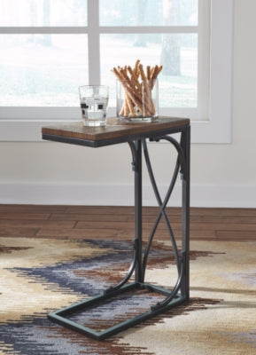 Slide into convenience with this modern chairside end table Its tubular metal base is designed with swiftness in mind The top sits above the metal base with a curving X motif on the tables sidewhat a smooth look Simply slide this table under the base of your chair or sofa and youll instantly have a handy work surface or dining surfaceperfect for meals in front of the TV and craft projects Be sure to get more than one Everyone will want a table to enjoy
