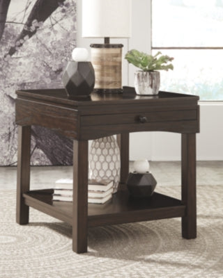 Welcome a sidekick full of casual style and functionality to your living room with this oneofakind rectangular end table Its pullout tray comes in handy for holding a plate of snacks or setting down a drink Lower shelf space is handy for extra storage displaying accents or books The style with a transitional finish provides a relaxed vibe