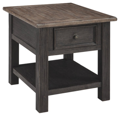 Shabby chic with a hint of down home country This rectangular end table with textured black finish is all the talk of todays design world Wood grain shows through the weathered graybrown top in all of its earthy pleasure Framed drawer is adorned with lovely traditional hardware Smooth pullout makes it easy for you to store away your belongings in style